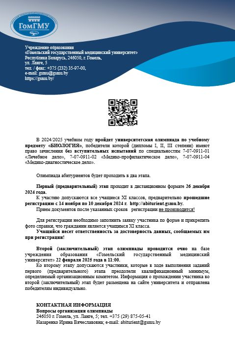 Регистрация на университетские олимпиады, проводимые в УО «Гомельский государственный университет имени Ф. Скорины» 2024-2025 гг. (регистрация до 25.12.2024)