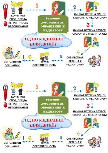 Школьники-медиаторы, прошедшие специальное обучение, помогают как одноклассникам, так и другим учащимся помириться, найти выход из любой конфликтной ситуации, сложившейся в школе.